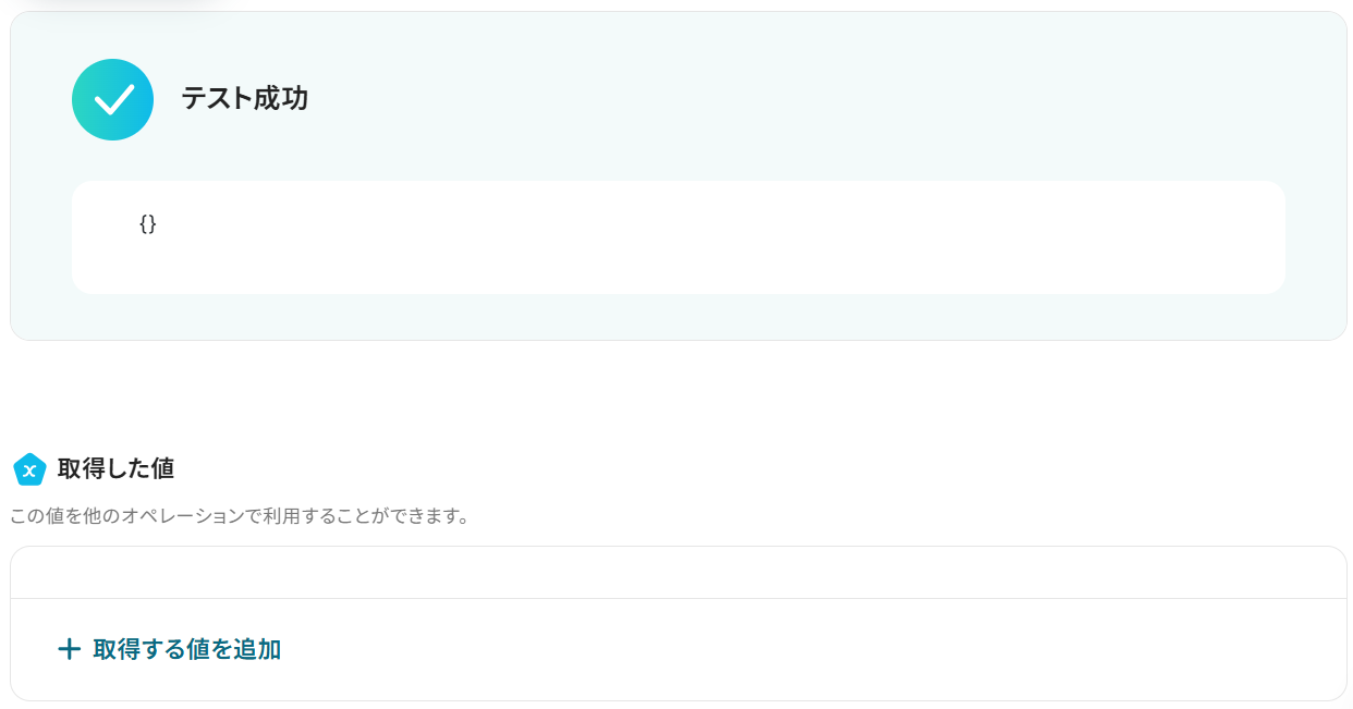 成功したら保存してください。ここで取得した値を次以降のステップで活用します。