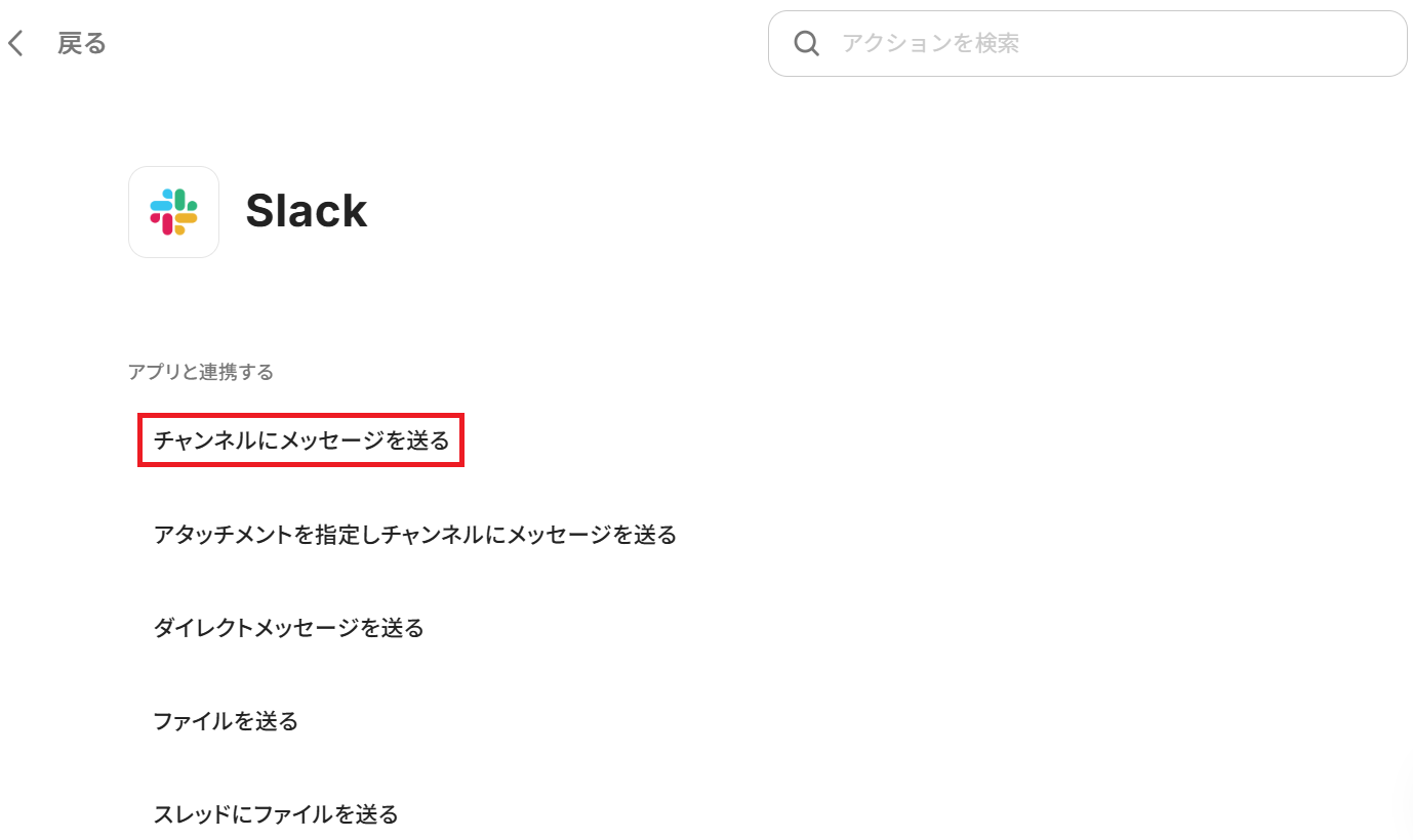 A:可能です。例えばSlackに連携したい場合、LINE公式アカウントのアクションを削除し、代わりにSlackの「チャンネルにメッセージを送る」アクションなどを追加してください。