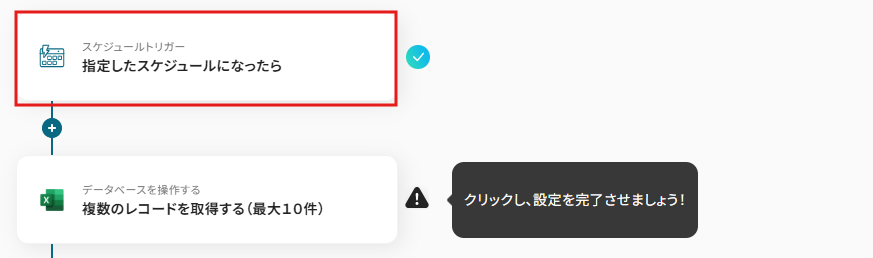 - スケジュールトリガー設定とMicrosoft ExcelとOutlookのアクション設定