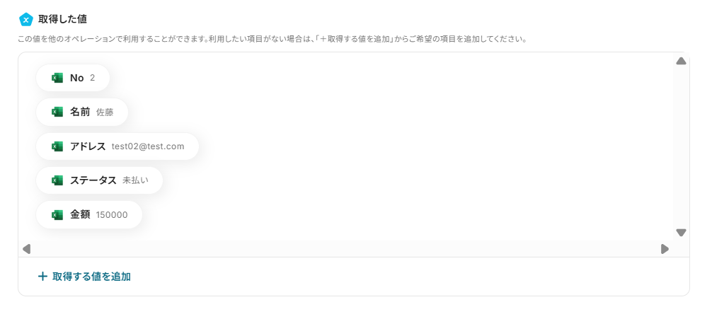 ここで取得した値を使用して、「指定日時にMicrosoft Excelから未払い情報を取得して、Outlookで集金の依頼メールを自動送信する」フローを完成させていきます。