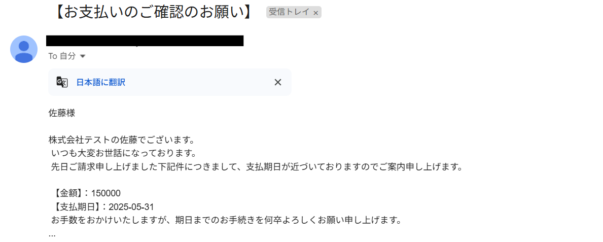 「Googleフォームで支払い情報が送信されたら、集金の依頼メールを自動送信する」ワークフローを利用すると、入力された支払い情報に基づきメール送信が自動化されます。