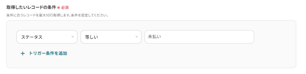 今回は「未払い」情報を取得したいので、ステータスの「未払い」に設定しました。