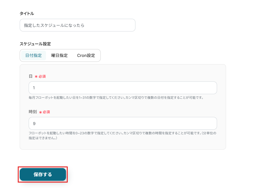 ・トリガーは5分、10分、15分、30分、60分の間隔で起動間隔を選択できます。