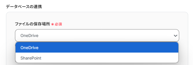 プルダウンから「OneDrive」と「SharePoint」から選択可能です。