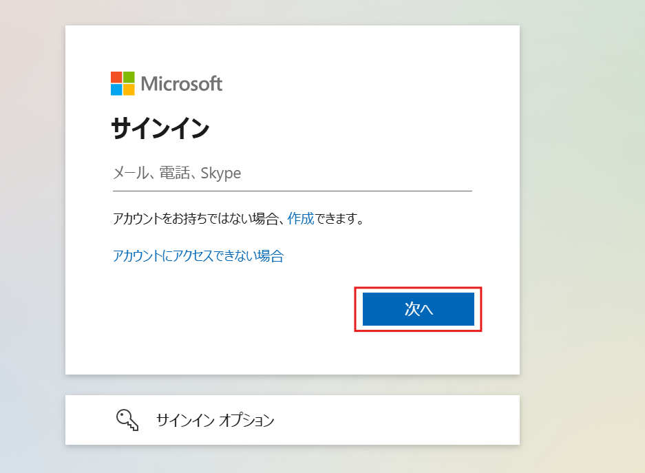 パスワードを入力後、右下の「サインイン」をクリックして次に進みましょう。