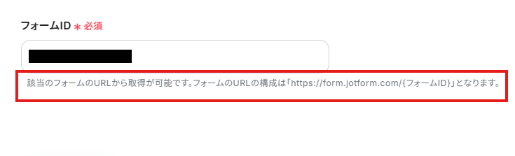 2.API接続設定を行います。 「フォームID」は、入力欄下の説明に従って、入力してください。入力欄をクリックして表示される候補から選択もできます。 候補は、連携しているアカウントに紐づいて表示されます。