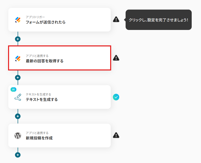 1.アプリと連携する「最新の回答を取得する 」をクリックしましょう。