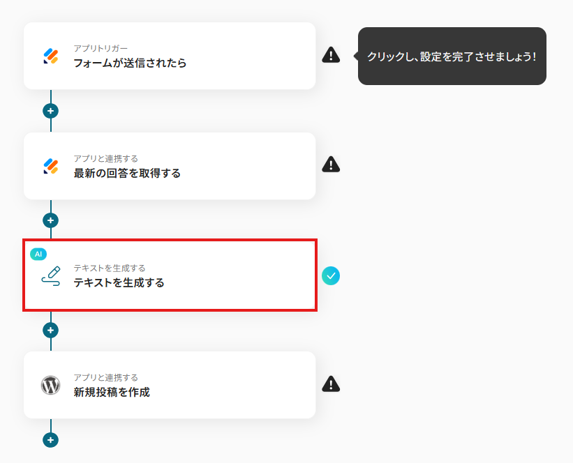 1.続いて、AI技術を使って、テキストを生成する設定を行います。 「テキストを生成する 」をクリックしましょう。