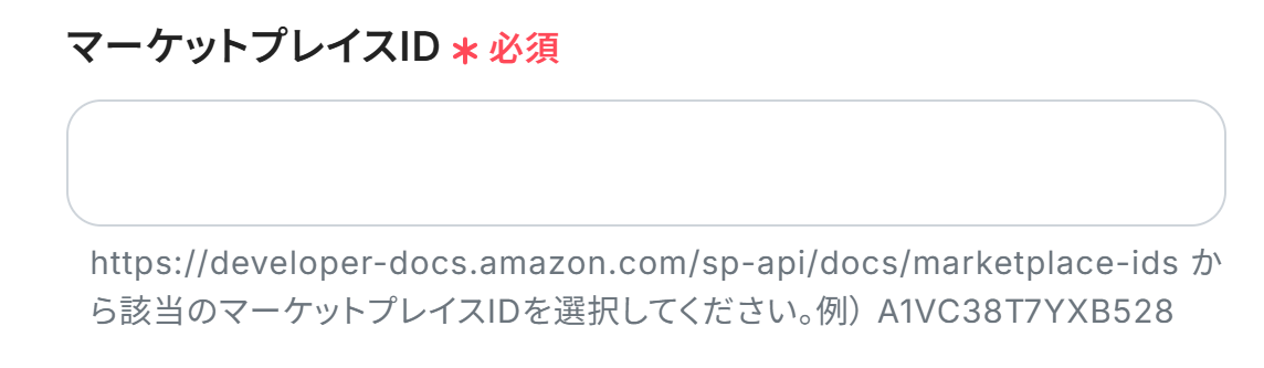 マーケットプレイスID:こちらを参考にしながら、該当するIDを入力しましょう。