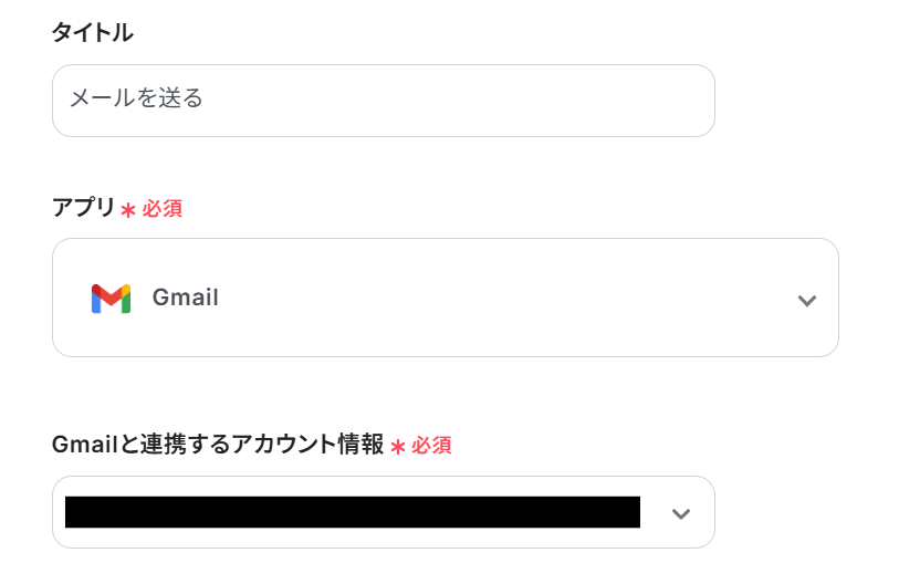 Gmailと連携するアカウント情報はプルダウンから選択します。