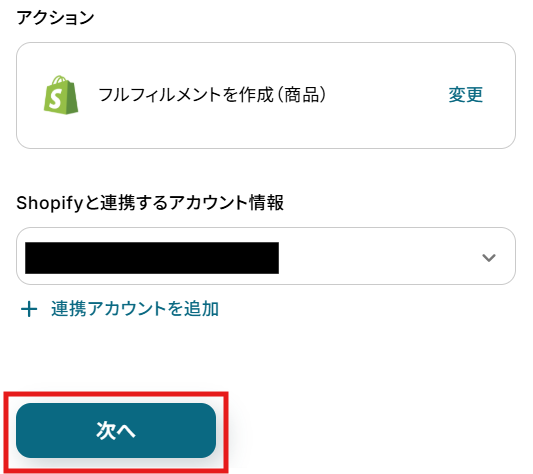 アクションは、「フルフィルメントを作成(商品)」のままで次に進みましょう!