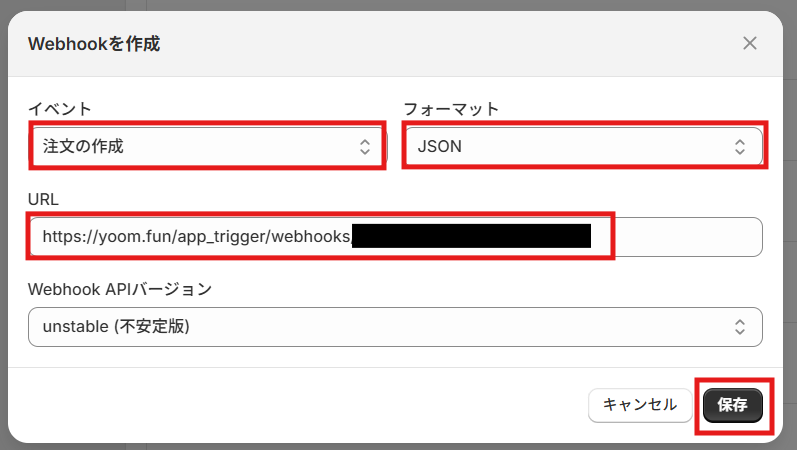 まずは、ShopifyのアクションをYoomに連携するために、Webhookの設定を行います。
