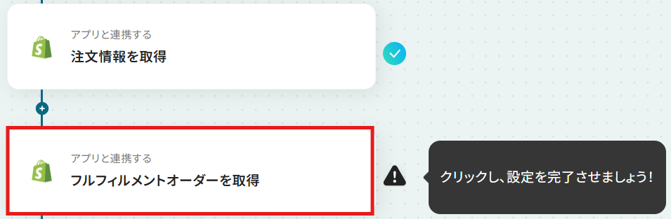 次に、Shopifyで作成した注文のフルフィルメントオーダーを取得する設定を行います。