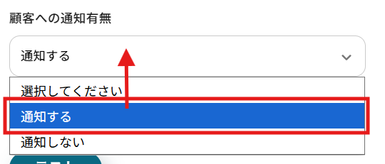 編集欄をクリックして、プルダウンで顧客への通知の有無を選択してください。