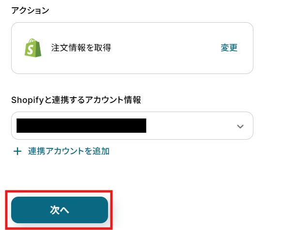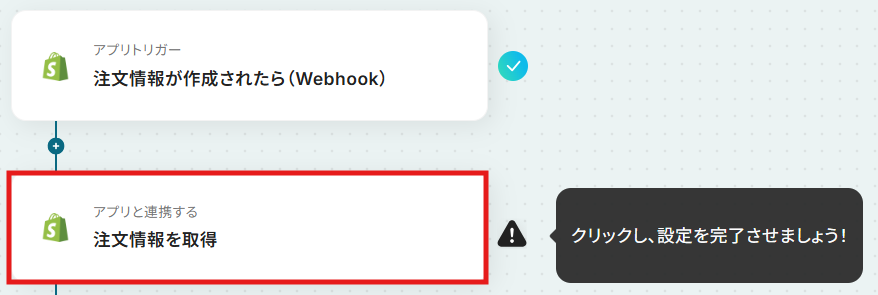 次に、Shopifyで作成した注文の詳細情報を取得する設定を行います。