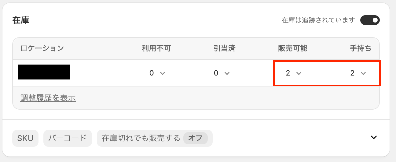 実際に、Shopifyの商品の在庫数が更新されたか確認してみましょう! 更新されましたね。