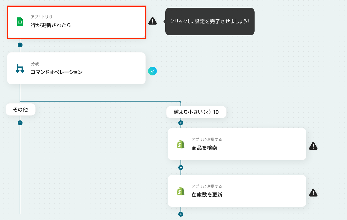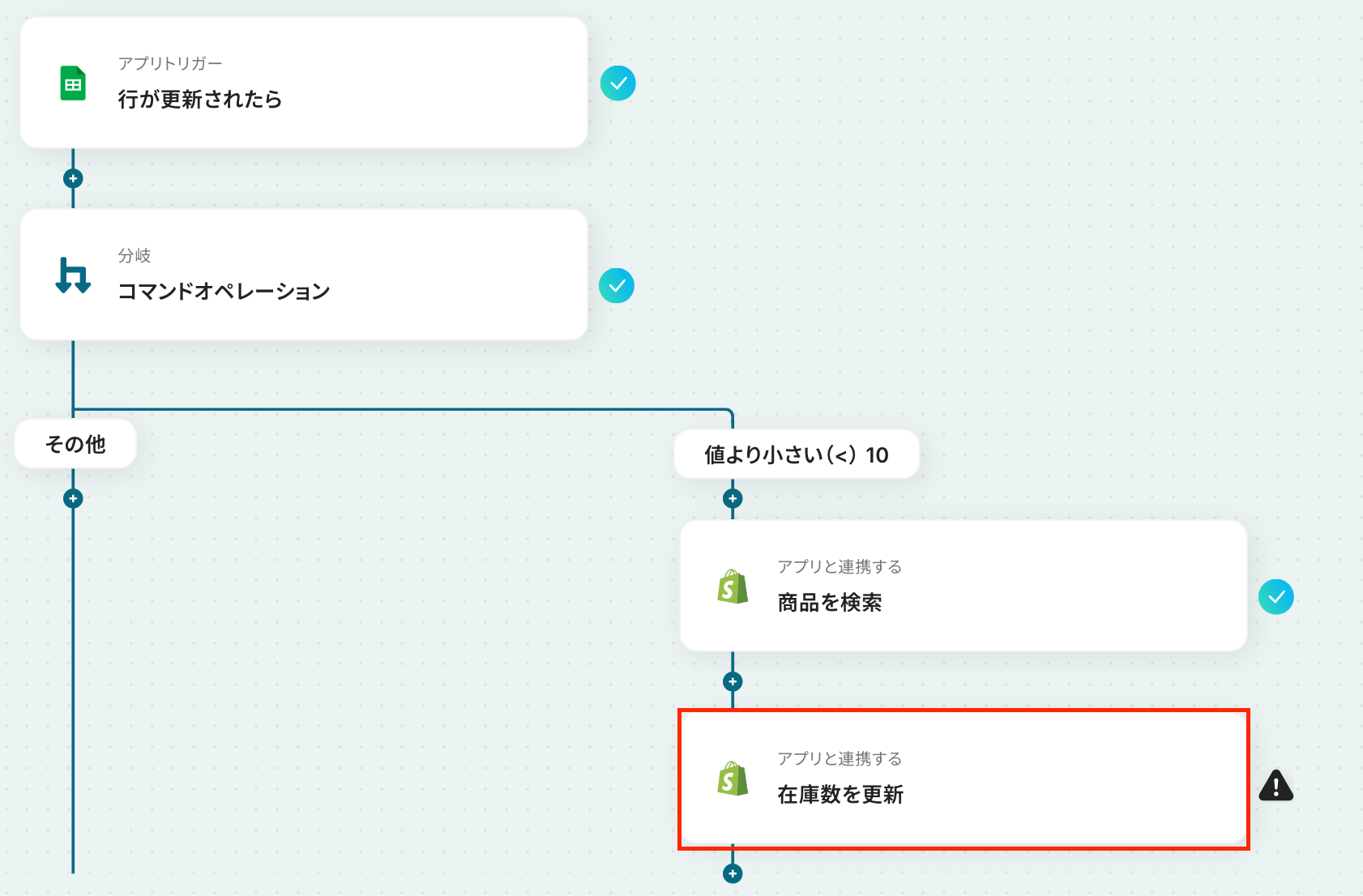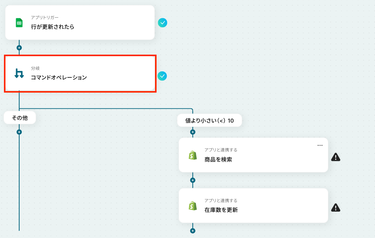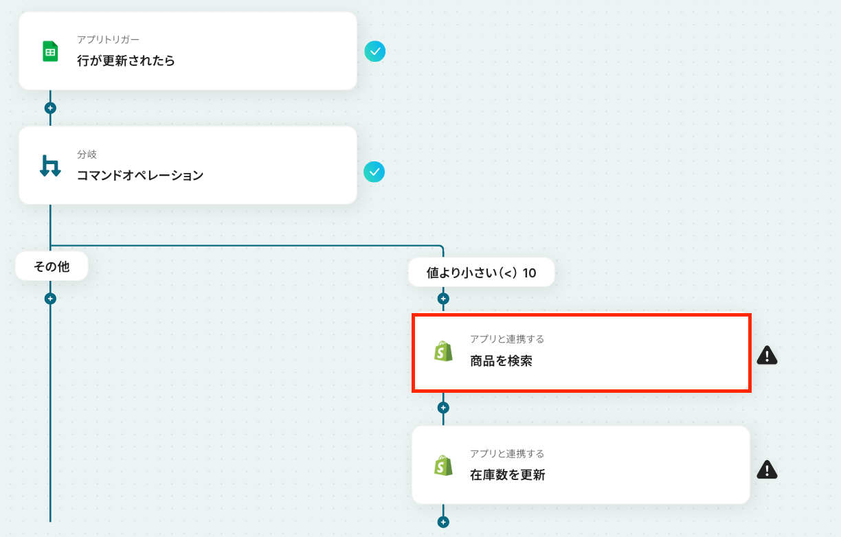 Google スプレッドシートのトリガー設定・分岐設定・Shopifyのアクション設定