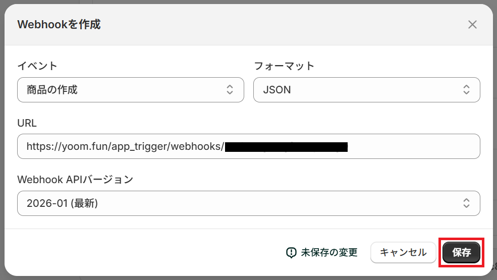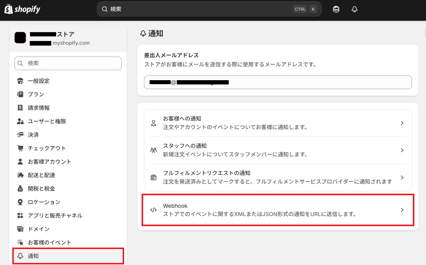 まず「注意事項」を参考に、ShopifyでWebhook設定を行いましょう。