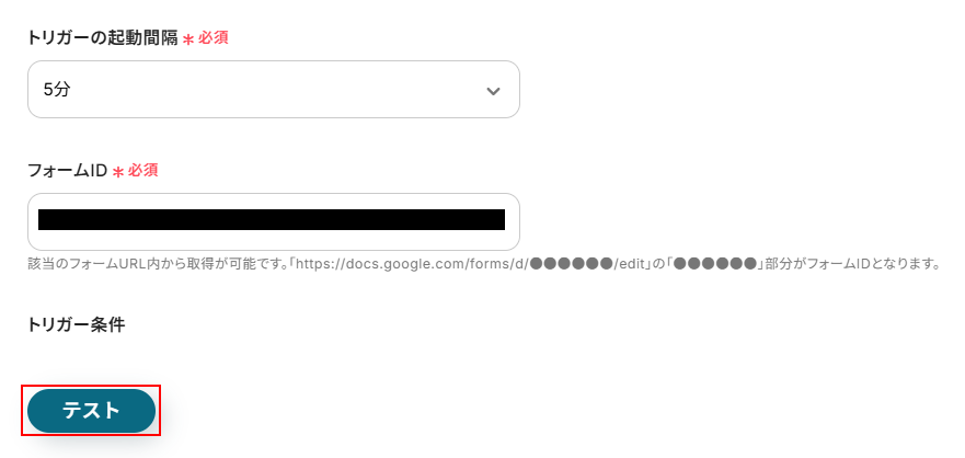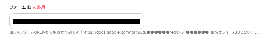 注釈を確認しながら先ほどコピーしたURLからフォームIDとなる箇所を抜き出して入力してください。