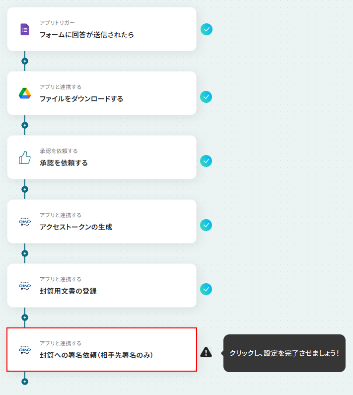 GMOサインで契約が完了したらAirtableの情報を更新するフローです。