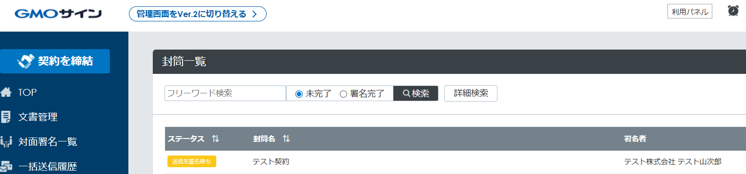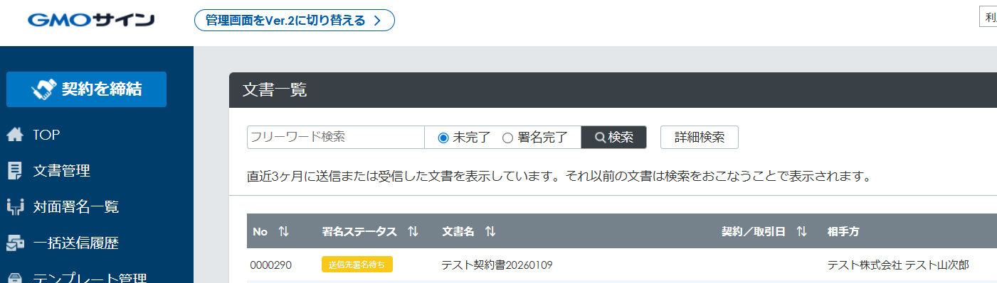 ※GMOサインでの署名依頼方法は「GMOサインで署名依頼を行う」をご参照ください