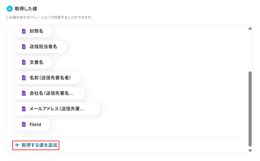 値を追加すると、以下のように取得した値の項目に表示されます。