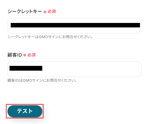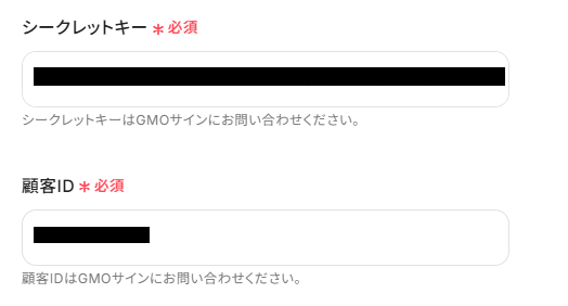 シークレットキーと顧客IDを入力します。