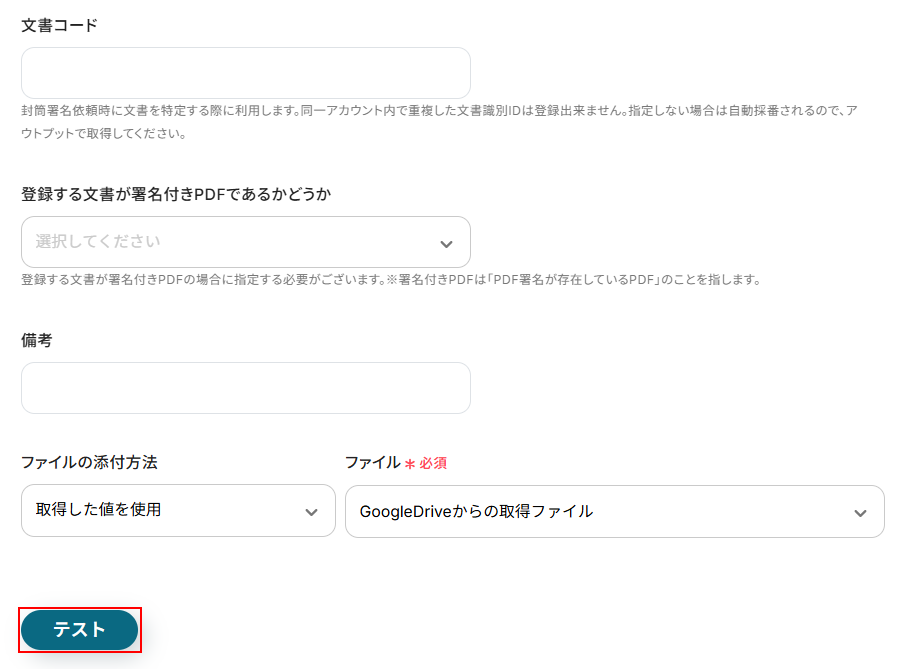 そのため、GMOサインから署名依頼を行うためのテスト用PDFが必要となりますので用意しておきましょう。