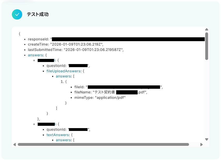 そのため、実際にテストを行うにはテスト用回答を送信する必要があります。