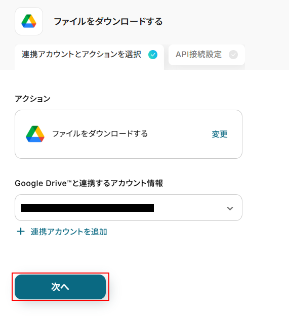 アカウントを確認して問題なければ次へをクリックしてください。