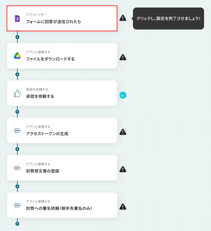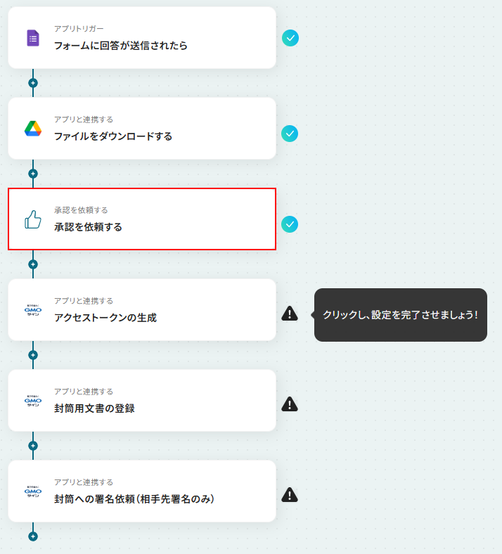 このフローに加えて『承認を依頼する』といったアクションの追加も可能なため、アレンジをして精度を高めることも可能です。