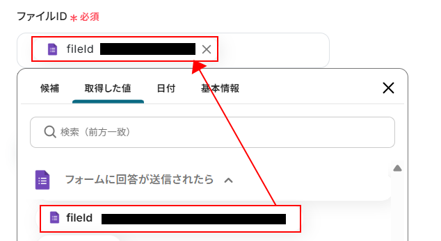 ファイルIDには取得した値が設定されています。