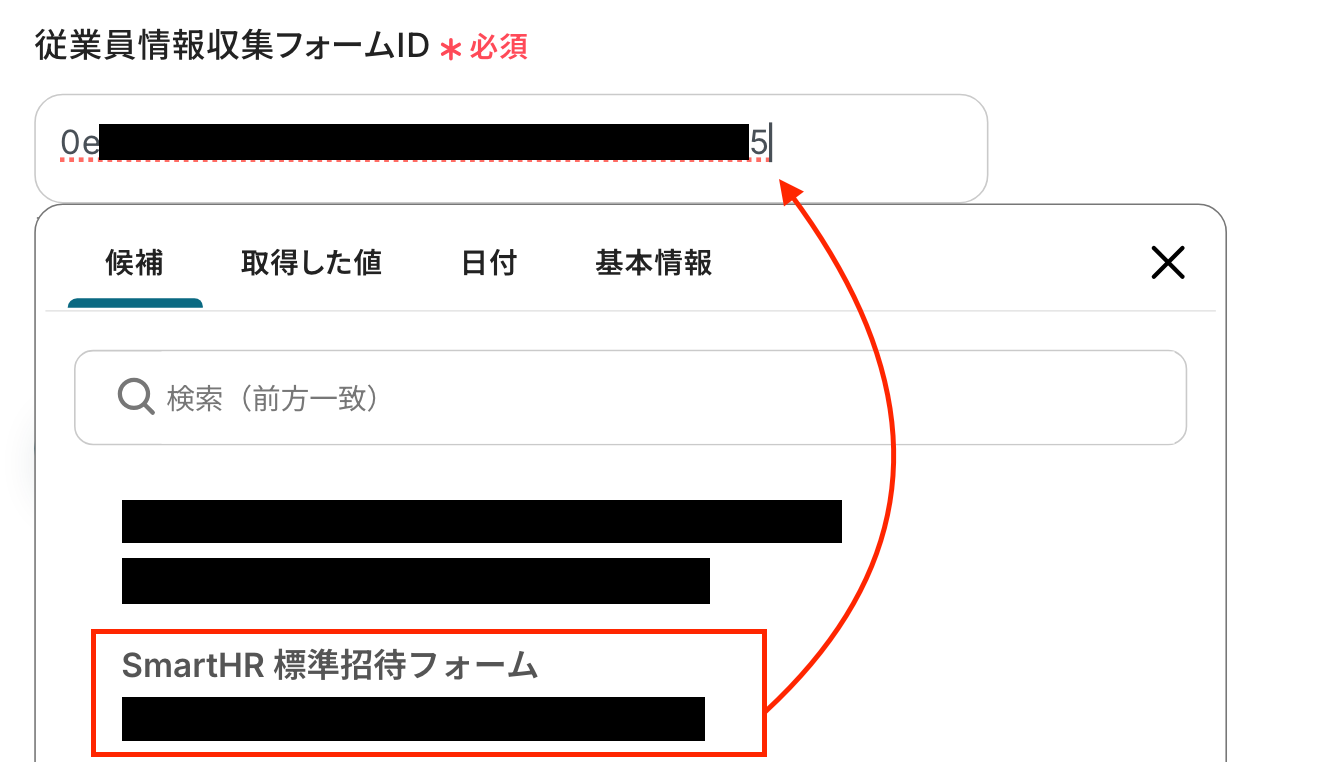 続いて、「従業員情報収集フォームID」を設定します。
