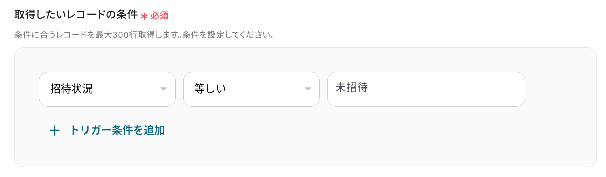 今回は「招待状況」が「未招待」のレコードを取得するように設定します。