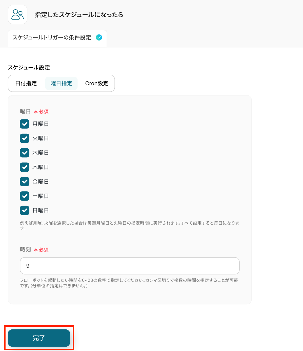 詳細については、スケジュールトリガーの設定方法を参考にしてください。