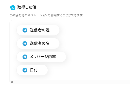 取得したアウトプットは、後続のオペレーション設定時の値としてご利用いただくことができ、フローボットを起動する度に、変動した値となります。