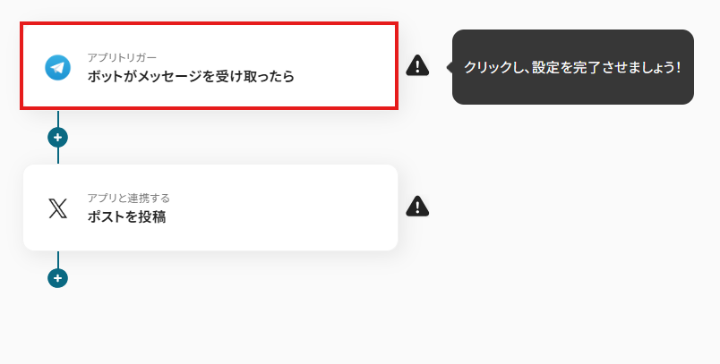 それではここから代表的な例として、Telegramに特定のメッセージが投稿された際に、その内容をX(旧Twitter)に自動でポストするフローを解説していきます!