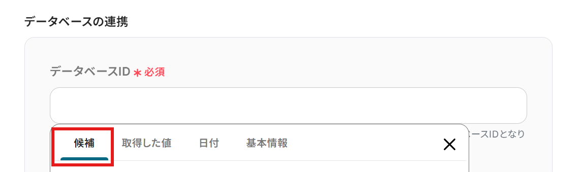 データベースIDは入力欄をクリックすると候補が一覧で表示されるので、そこから選んでくださいね。