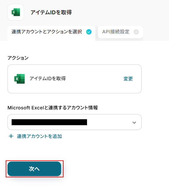 ステップ6:Microsoft ExcelのアイテムIDを取得する設定