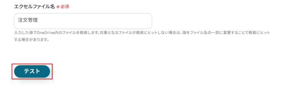 ※テストをクリックすると、実際にエクセルファイルにレコードが追加されます。