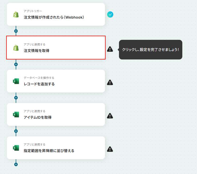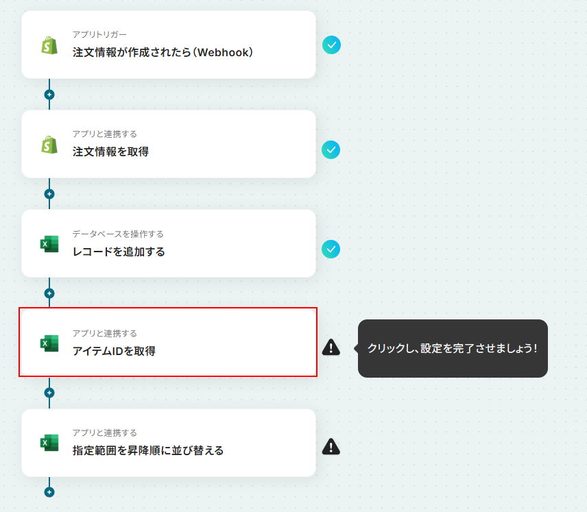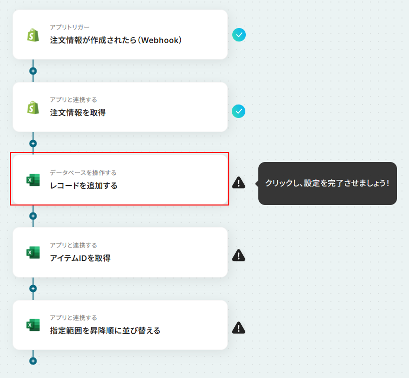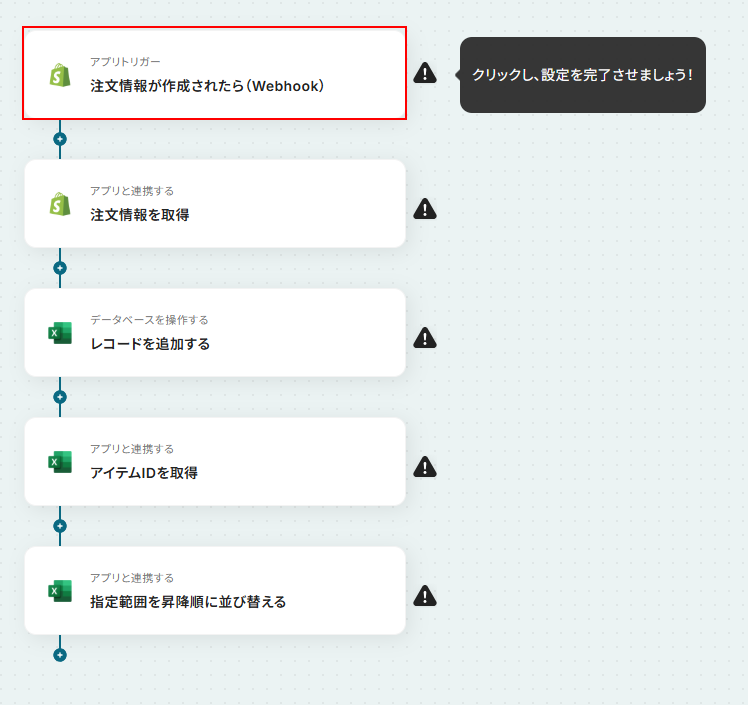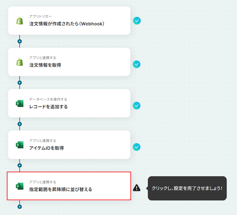 それではここから代表的な例として、Shopifyに注文情報が作成された際に、Microsoft Excelにレコードを自動で追加しソートするフローを解説していきます!