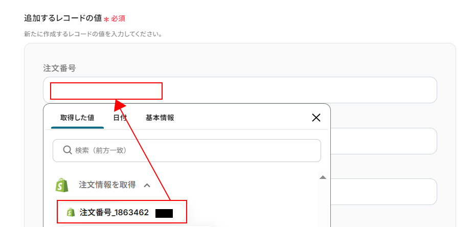 ステップ4:Shopifyの注文情報を取得する設定