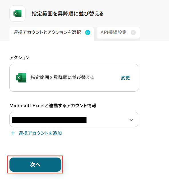 アカウントを確認して問題なければ次へ進みます。