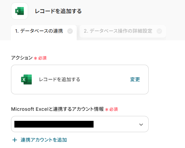 ステップ5:Microsoft Excelにレコードを追加する設定