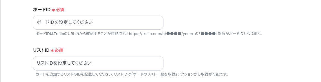 ボードIDとリストIDは、枠外の注釈を参考に手動で設定してください。