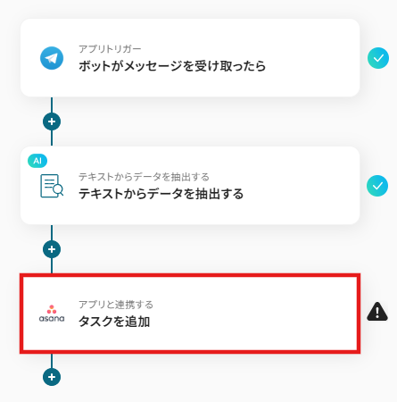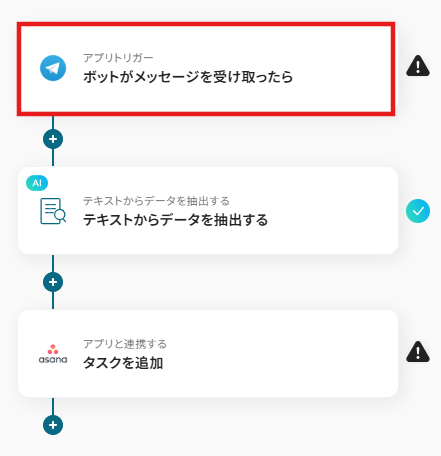 それではここから代表的な例として、Telegramで特定のメッセージを受信した際に、その内容を基にAsanaにタスクを自動で作成するフローを解説していきます!