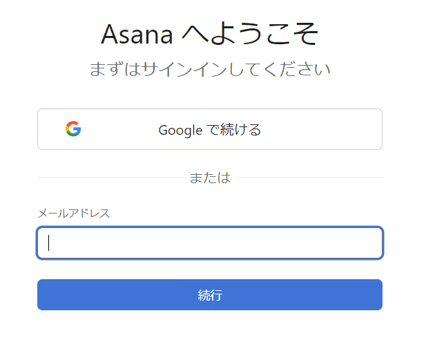 以下の画面で、Asanaのアカウントのアドレスとパスワードを入力してログインします。