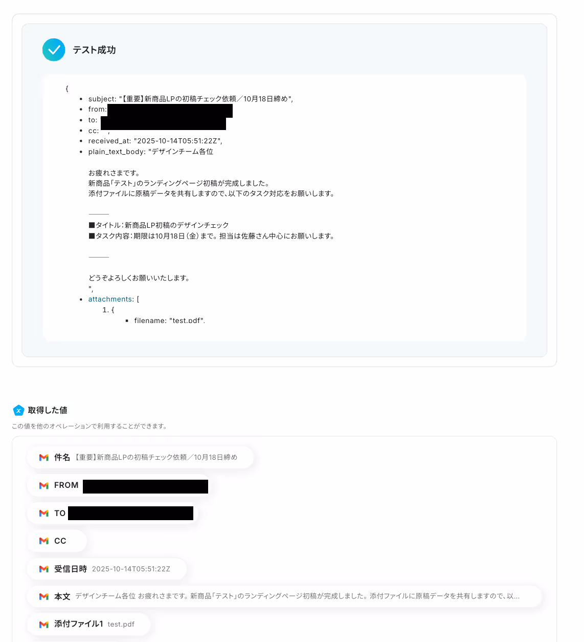 先ほどテスト送信したメール内容が反映されていれば、OKです!