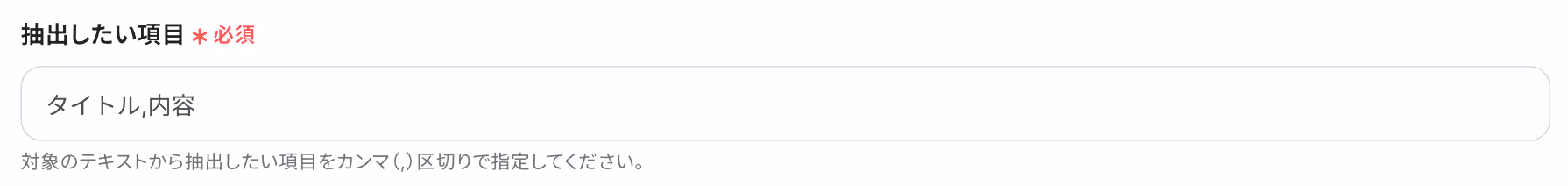 ここでは、Gmailのトリガー設定で取得した値からデータを抽出する設定を行います。