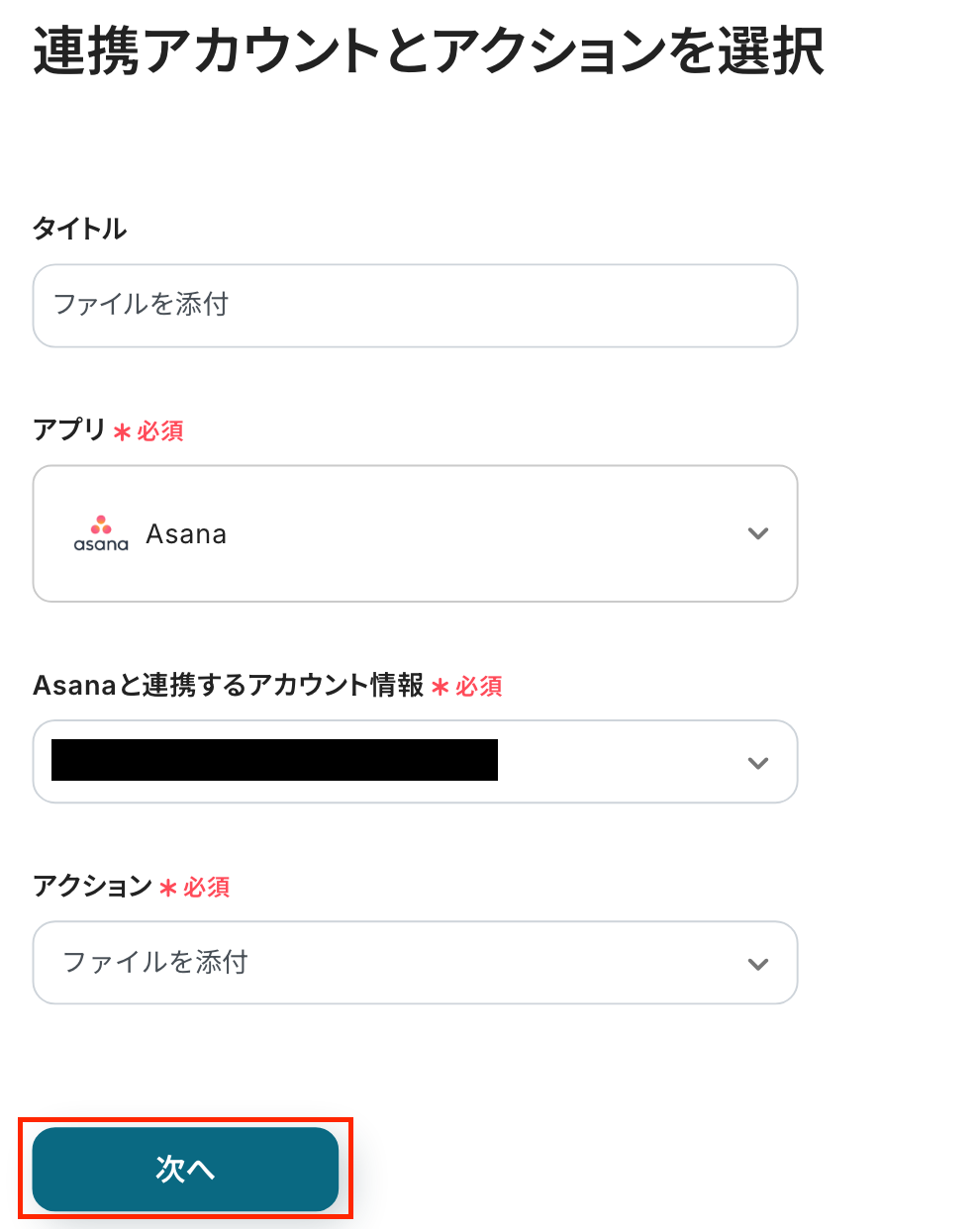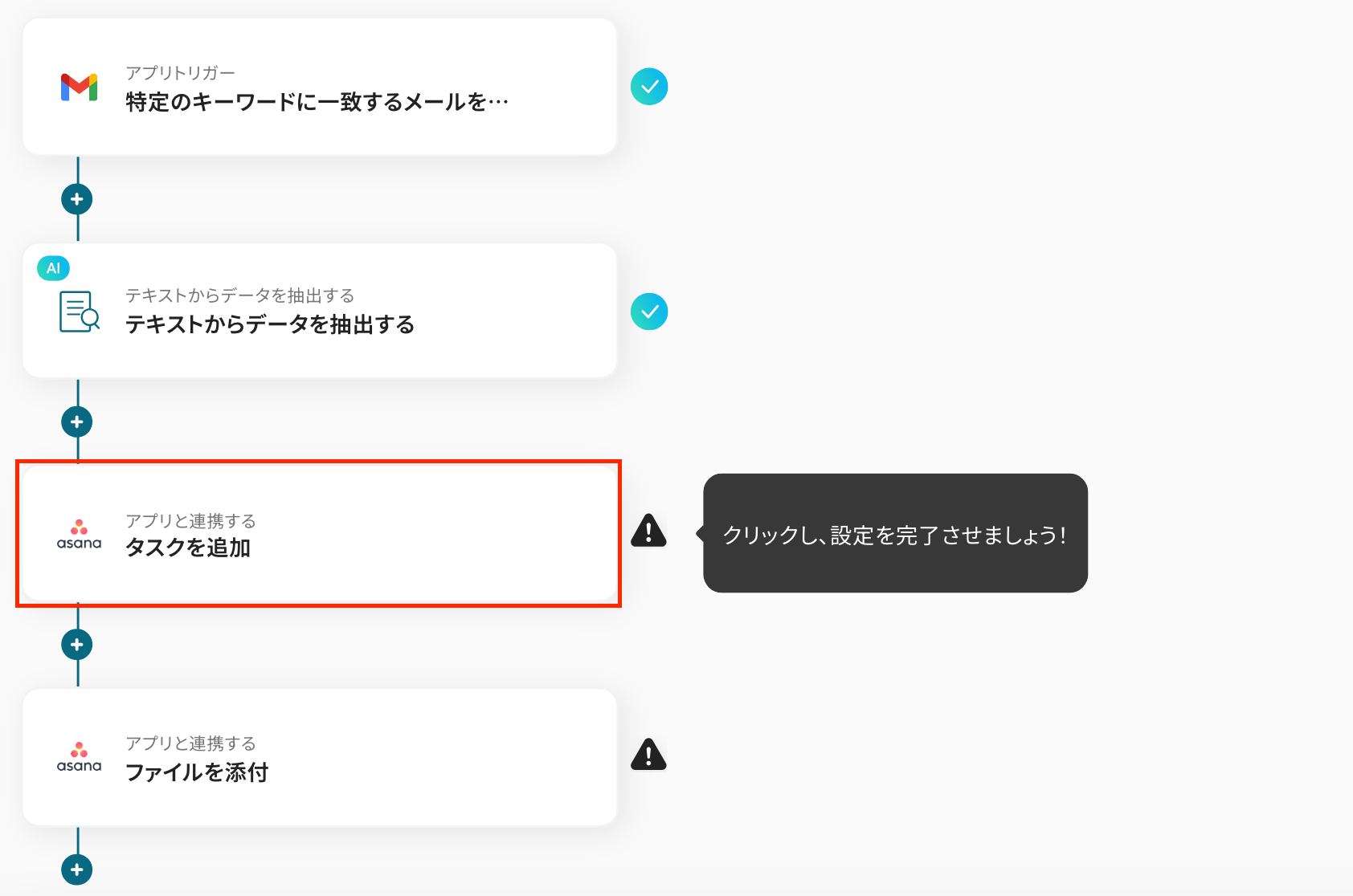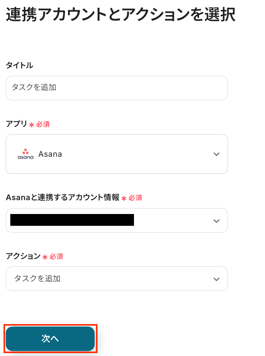 続いて、先ほど抽出したデータを引用し、Asanaにタスクを追加する設定を行います。